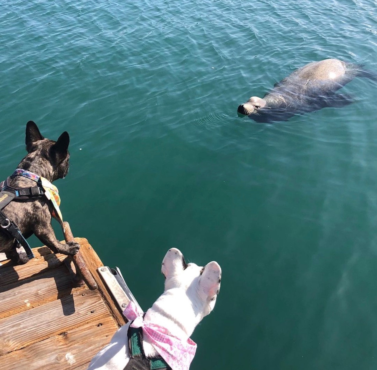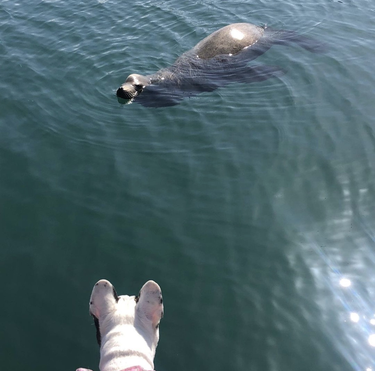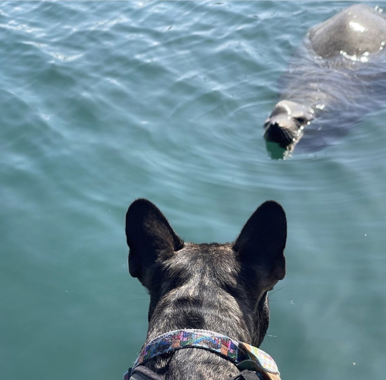 My mom said if she could make a bumper sticker it to put on back of cars, it would read ‘live like Eben.’ I am crazy. I am crazy for seals. One tried to kill me once…it drug me out to sea and my dad chased after it and pulled me back to shore while the seal tried pulling me back out with it into the wide open ocean. When my dad pulled me out of the water, my head was in the seals mouth. my mom ran up and pulled open the jaws of the seal and pulled my head out. True story. What are you crazy about? That even when it tries to kill you or hurts you or disappoints you, but you don’t give up on loving it? She says that’s one reason why she’d have a bumper sticker that reads ‘live like Eben’… I don’t need a sticker but I need Three Dog Bakery, and actual seals. My mom says that i love fiercely and that I’m the only one in her life that loves her more than she loves herself. I’m not sure why some humans think dogs are lesser than humans, when we actually love even harder sometimes than them. One of my doggy dog joys in life has been teaching my brother Lassen to become a seal hunter. I know if there was an add on google for ‘seal whispers’ we’d be the brothers for the job. There’s the Dana point harbor, the sacred place of seals that my mom takes us throughout the week. We have officially taught our dog friends to join in on the seal hunt and we all run down to the dock where the Catalina express boat is to look for them. It always feels like that song ‘Who let the dawgs out’ should be playing as we run down the dock. This Easter, something happened that was way better than a sea world show, a large seal hung out with us for 10 minutes while we stood on the dock and he stayed looking up at us even while i freaked out screaming my frenchie scream. He was determined to stay in the moment with me taking me in as i took him in. It was like my Make a Wish foundation dream came true.